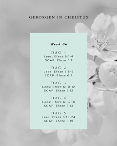 Elke dag bevinden we ons in een geestelijke strijd. Hoewel we aan de kant van de Overwinnaar staan, probeert de vijand ons nog steeds van onze koers af te leiden wanneer we met Jezus leven. Daarom is het nodig om dagelijks Gods wapenrusting aan te trekken. Twee van de delen van deze wapenrusting zijn de gordel van waarheid en het zwaard van de Heilige Geest. Deze vragen beide dat we Gods woord in ons hart bewaren. Welke Bijbelteksten kun je uit je hoofd leren om stand te houden tegen de plannen van de vijand? Je zou kunnen beginnen met het memoriseren van de weekteksten van deze studie.